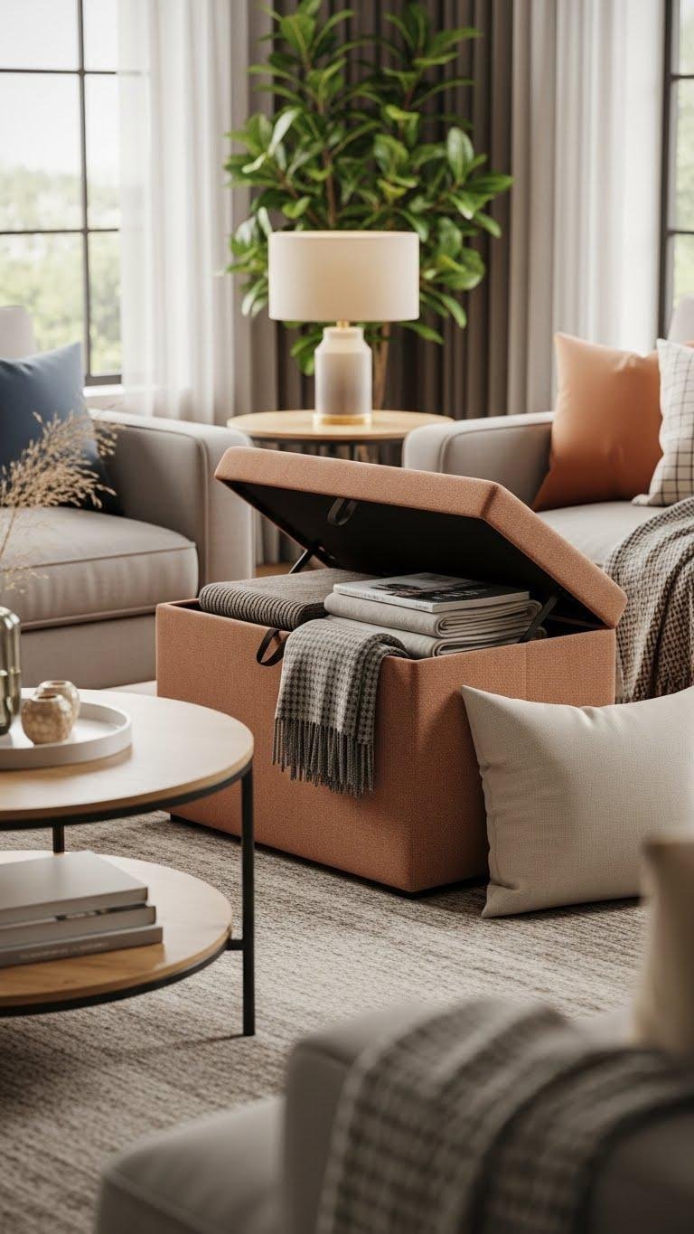 Choose low profile seating in natural fabrics and muted tones; rounded silhouettes soften sightlines, encourage lounging, and create open circulation so you can move freely and relax without excess clutter.