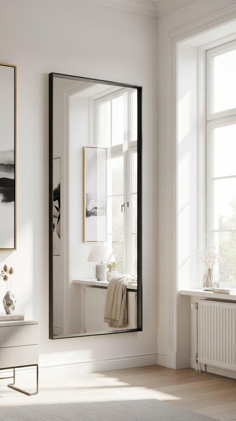 Placing a large statement mirror opposite a window instantly doubles the room’s light and opens up the space, so you’ll notice brighter corners and a more airy feel within moments.