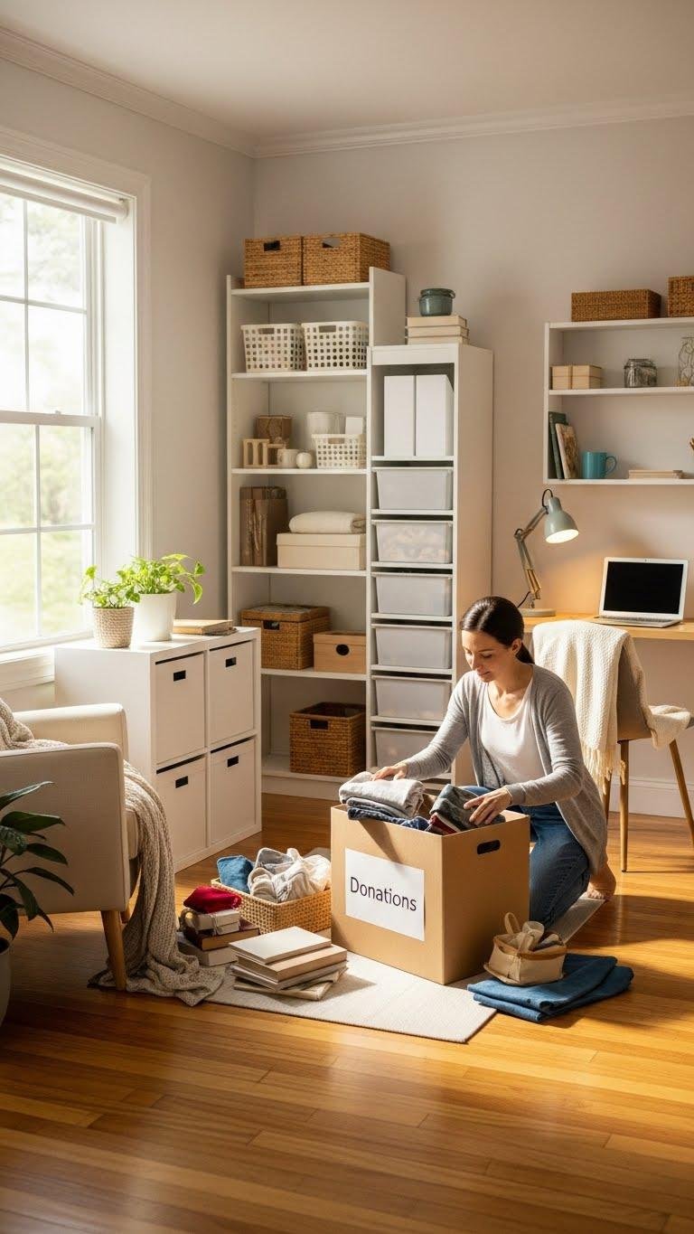 Use seasonal purging as ritual: sort, stash, or release. Set a donation rotation box, label it, and carry items out promptly so freedom replaces clutter.