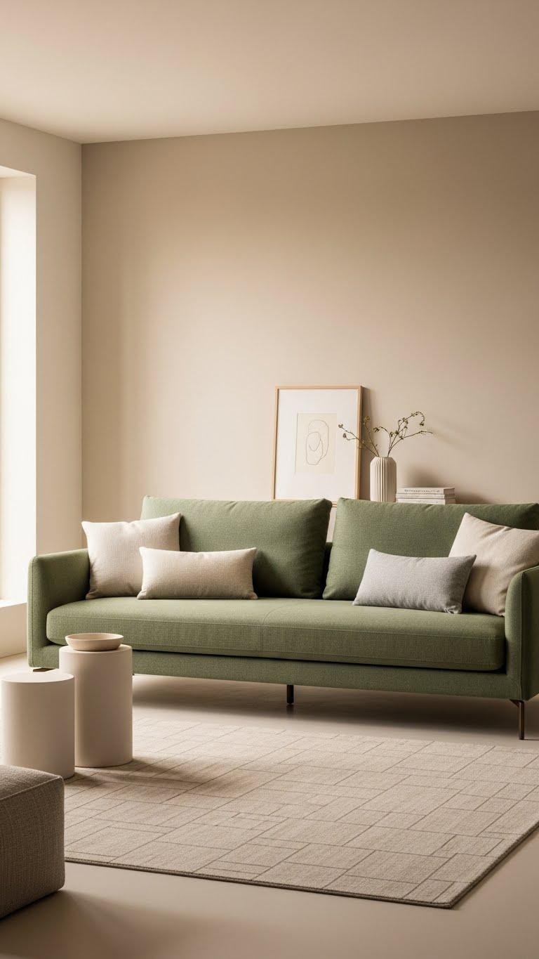 Anchor your living room with an oversized sofa in a muted hue to create a calm, inviting focal point that feels both grounded and effortless.