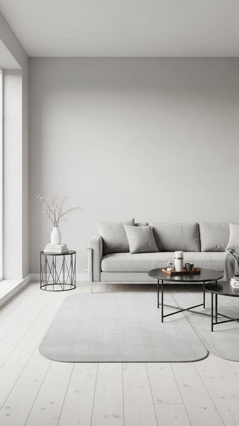 Often a single plush throw or layered rug will instantly soften a minimal living room and make it feel inviting without cluttering it.