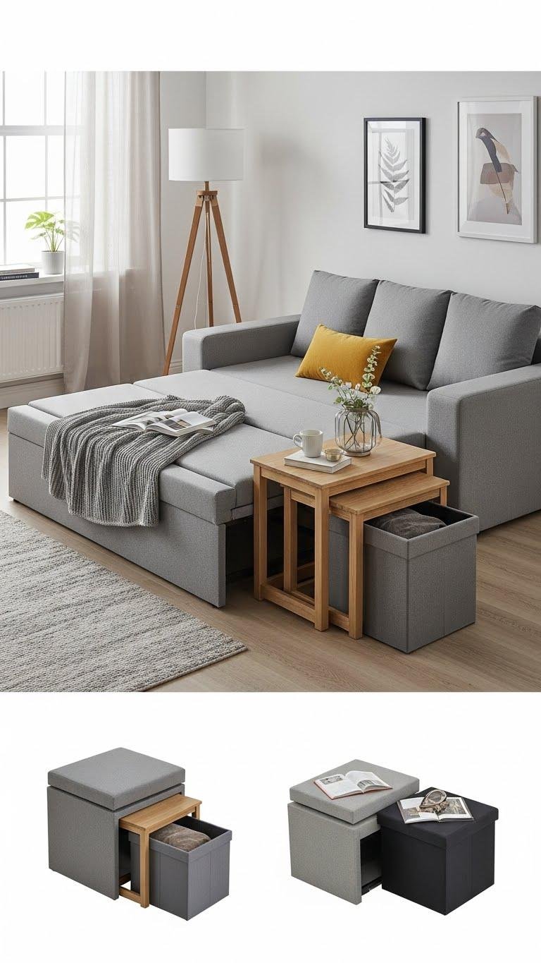 Because your home has to do more than just look good, design with pieces that shift easily between tasks: a slim sofa that converts to a guest bed, nesting tables that stack away, and storage ottomans that double as seating and conceal clutter.