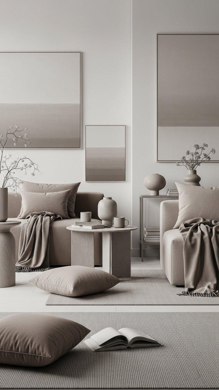Moving from a serene monochrome palette, introduce warm earth-toned accents to bring subtle warmth and tactile contrast to the room.