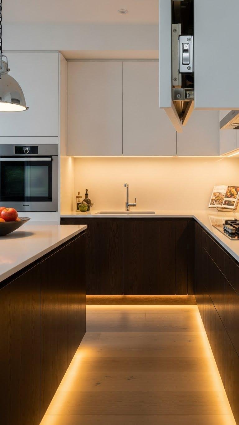 Beyond whole-room scenes, under-cabinet and toe-kick lighting brings purposeful, low-profile illumination to the places you use most. You’ll choose warm LED strips in recessed profiles to highlight tasks and edges without glare.