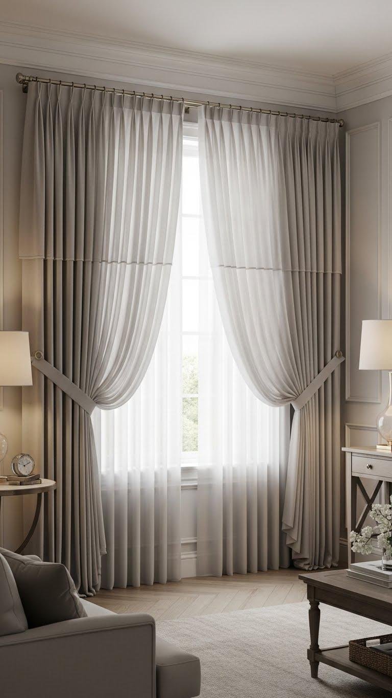 Choose curtains with floor length pleats and layered sheers to control light and mood. You’ll create a calm, liberated vibe—mix textures, keep hardware minimal, and let the drapery define the space without feeling fussy or restrictive.