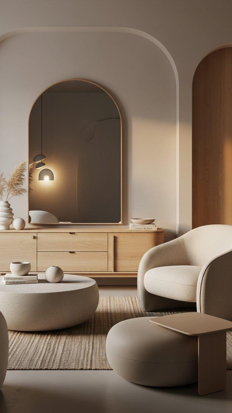 Incorporate Curved Mirrors and Rounded Furniture Silhouettes