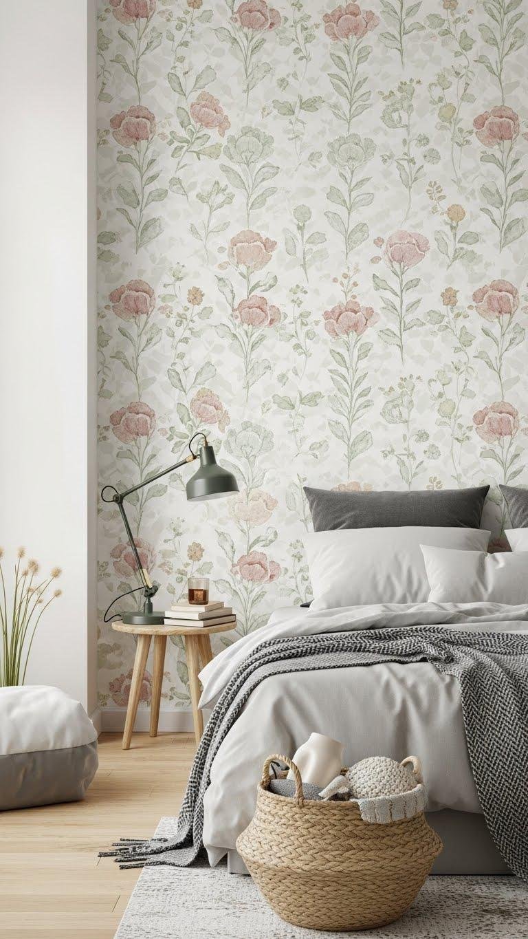 Highlight a single wall with scaled-pattern or floral wallpaper to give your bedroom instant personality without overwhelming the space.