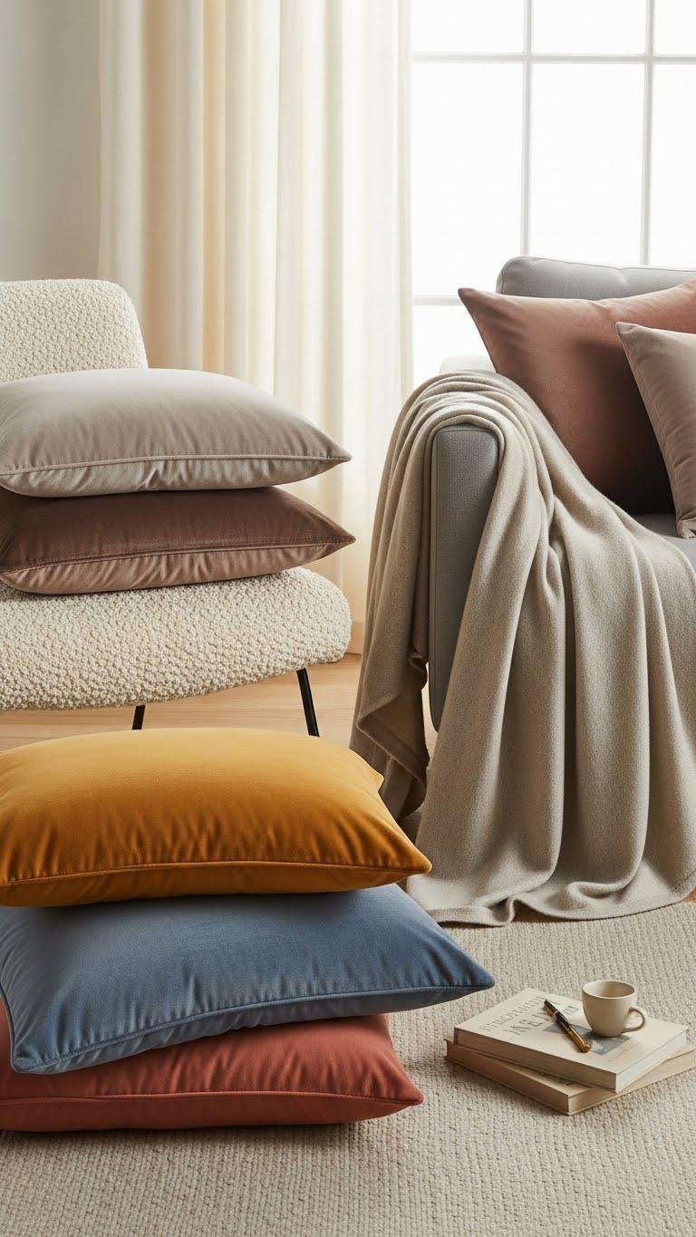 Layer Plush Textiles: Bouclé, Velvet, Cashmere Throws
