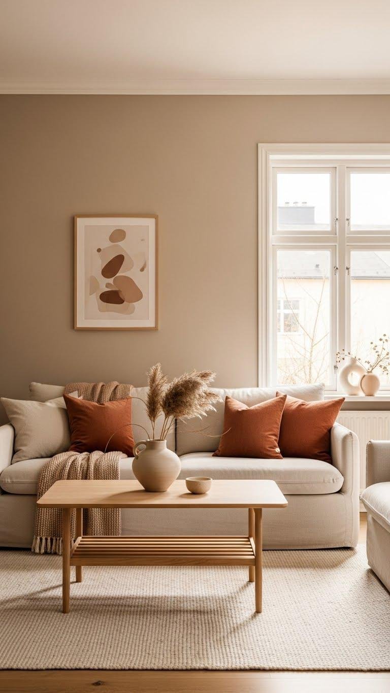 When you choose a warm neutral palette, you set a calm, inviting foundation that makes minimal spaces feel lived-in rather than cold. You’ll pair soft terracotta accents with buttery taupe walls to create quiet depth without clutter.