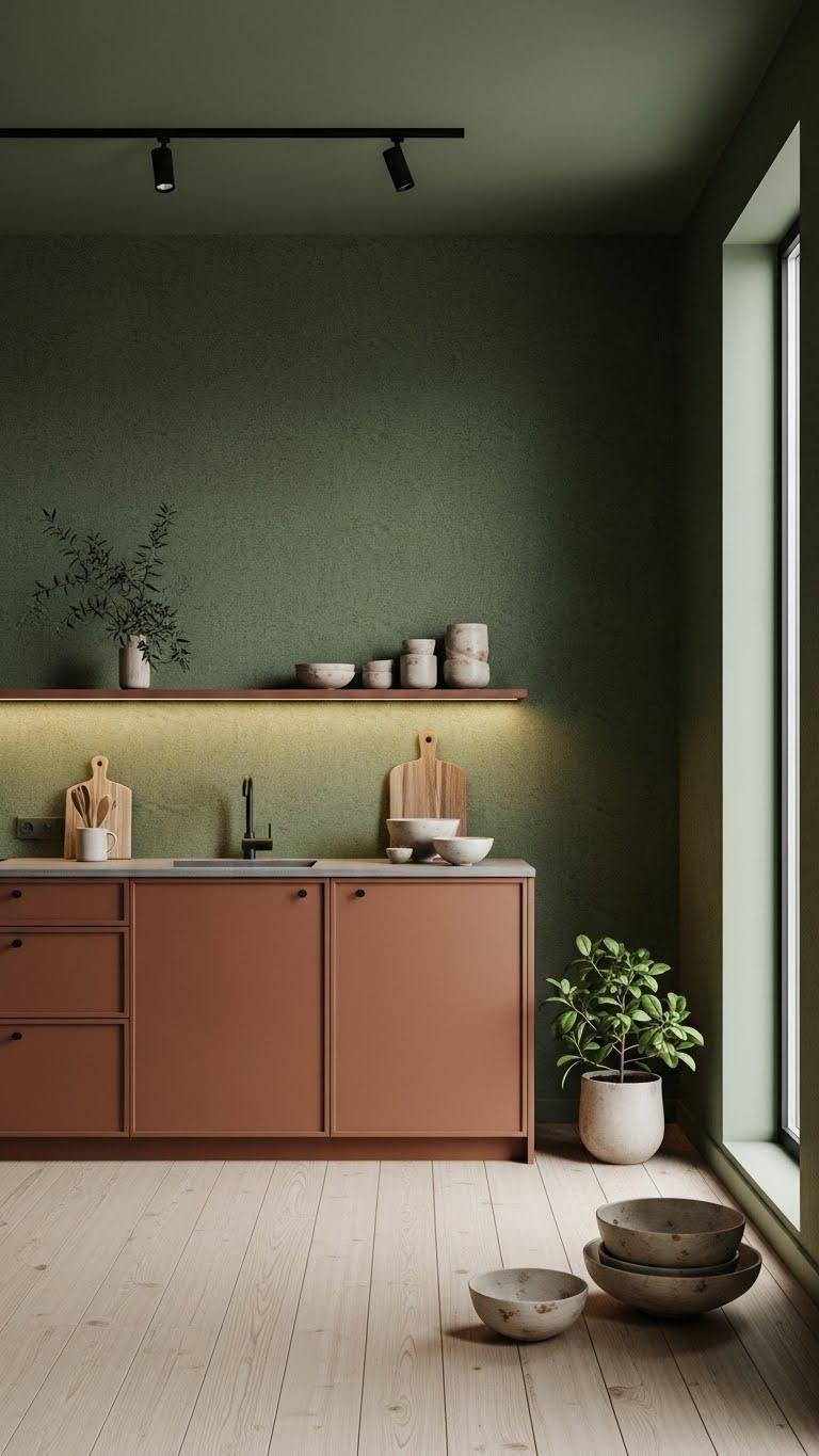 When you bring muted greens and mushroom shades into a minimalist room, they create a quiet, grounded backdrop that feels both modern and restorative.