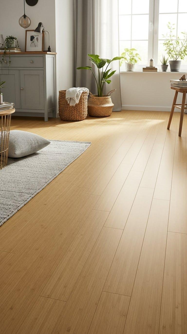 Layering natural textures looks even better against light wood floors, which amplify warmth and keep the room feeling open. Choose understated bamboo or pale oak to brighten space, reflect light, and create a calm backdrop for your life.