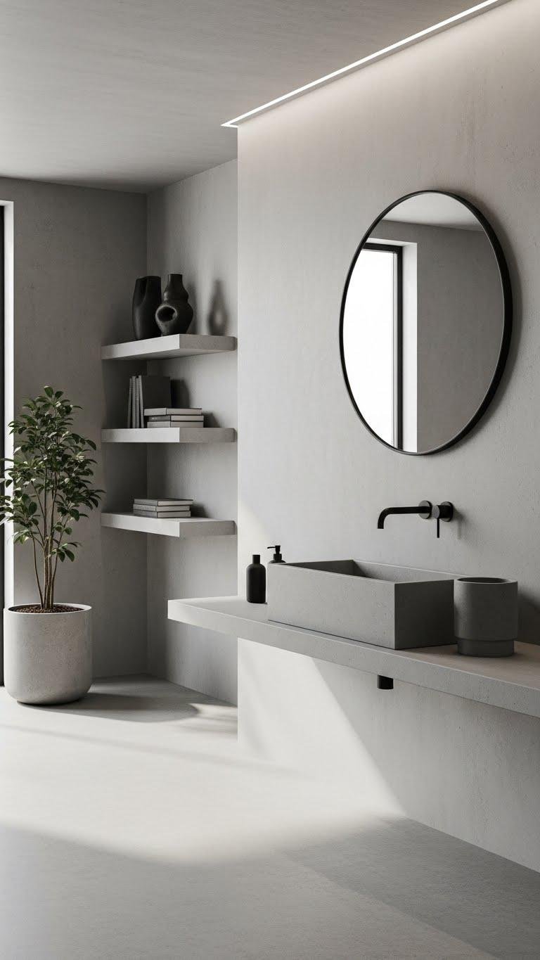 Choose matte fixtures for hardware and lighting to create crisp contrast; add concrete accents—sinks, planters, or shelving—to anchor spaces. They’re durable, restrained, and free the room from fuss, letting form and texture speak with calm confidence.