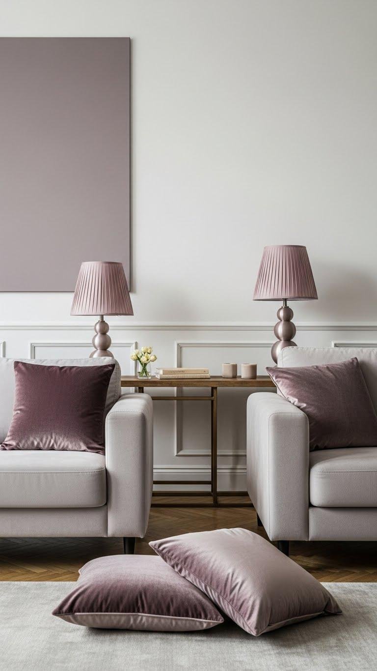 Mix matte finishes with gentle sheens to give a minimalist room quiet dimension without adding visual clutter. You’ll layer a velvet sheen on cushions and a satin contrast on lamps or trim to create tactile interest that still breathes.