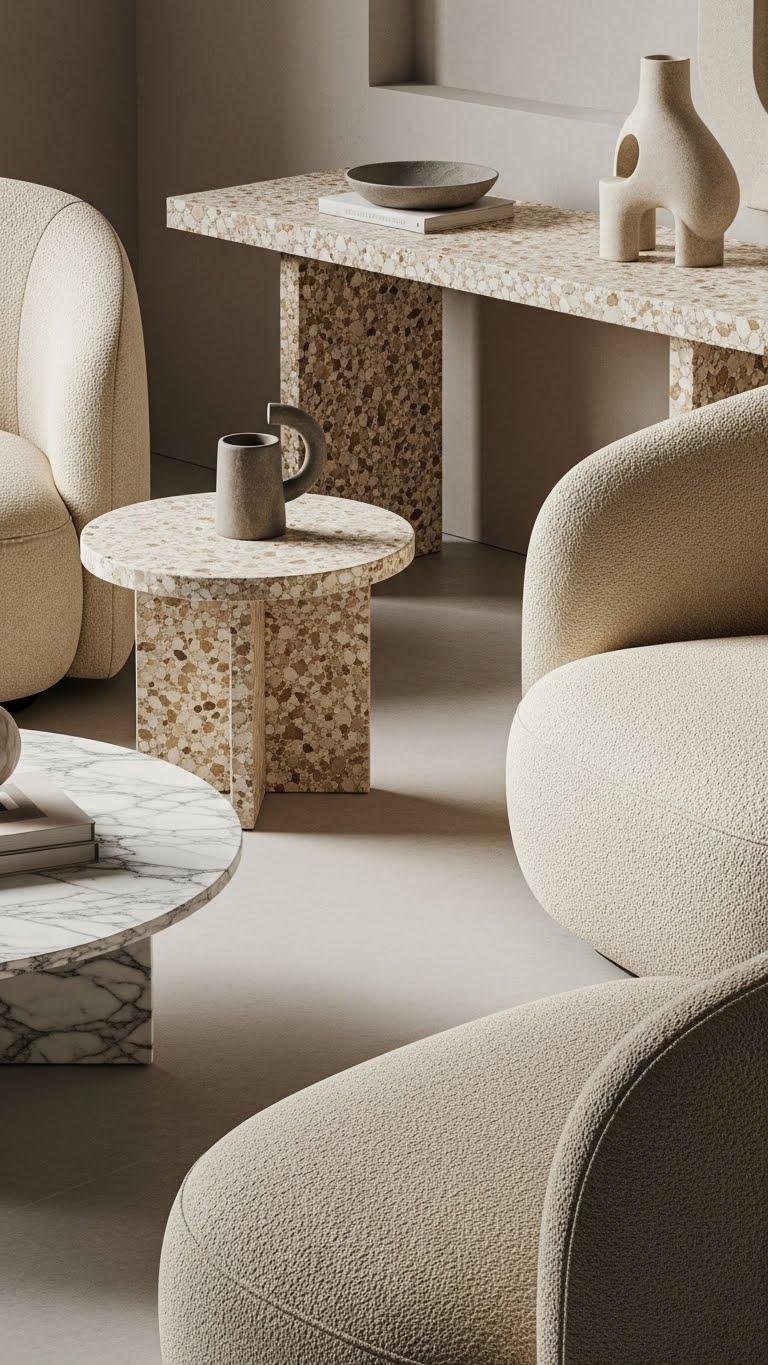 You’ll want your rooms to feel gentle, tactile, and quietly refined, so start by choosing sculptural seating, rounded tables, and layered natural textiles. Mix fluted wood, stone tops, and live‑edge shelves for rhythm and grain, then soften with matte limewash walls and high‑CRI lighting. Think curated plants and objects that bring scale and calm — here are 25 practical ideas to help you shape a breathable, restorative space…