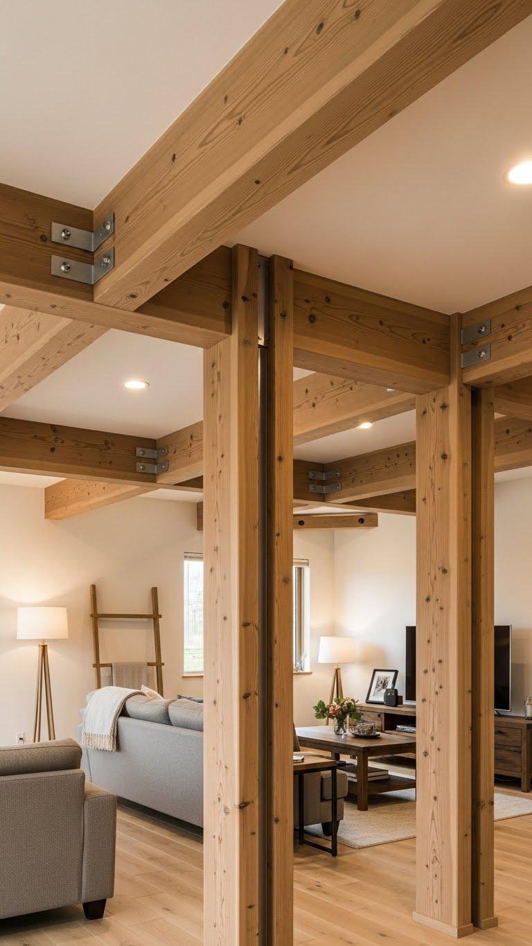 Reveal your home’s history by exposing and refinishing structural beams — they instantly lend warmth, scale, and architectural interest while keeping the look natural and modern.