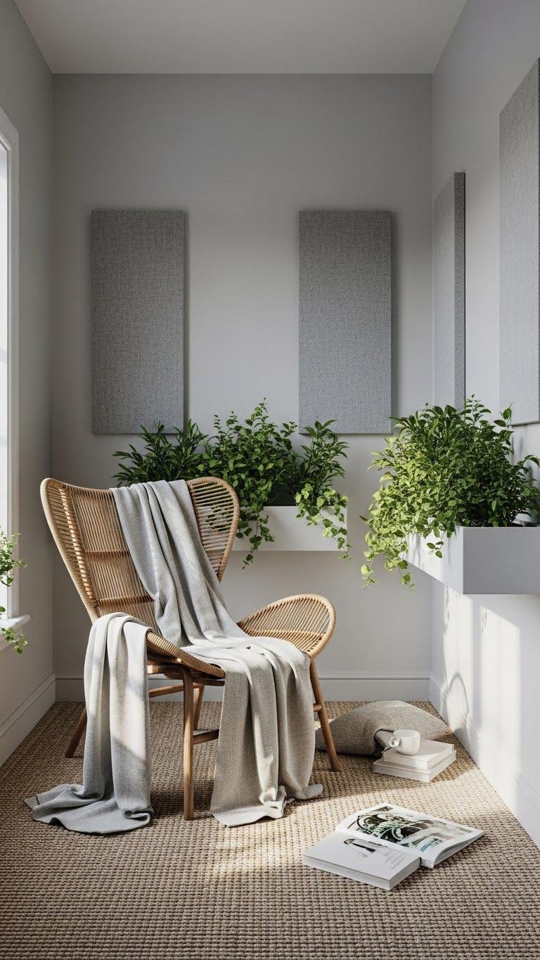 When you build a biophilic reading nook, layer natural textures and greenery to create a calm, restorative retreat.