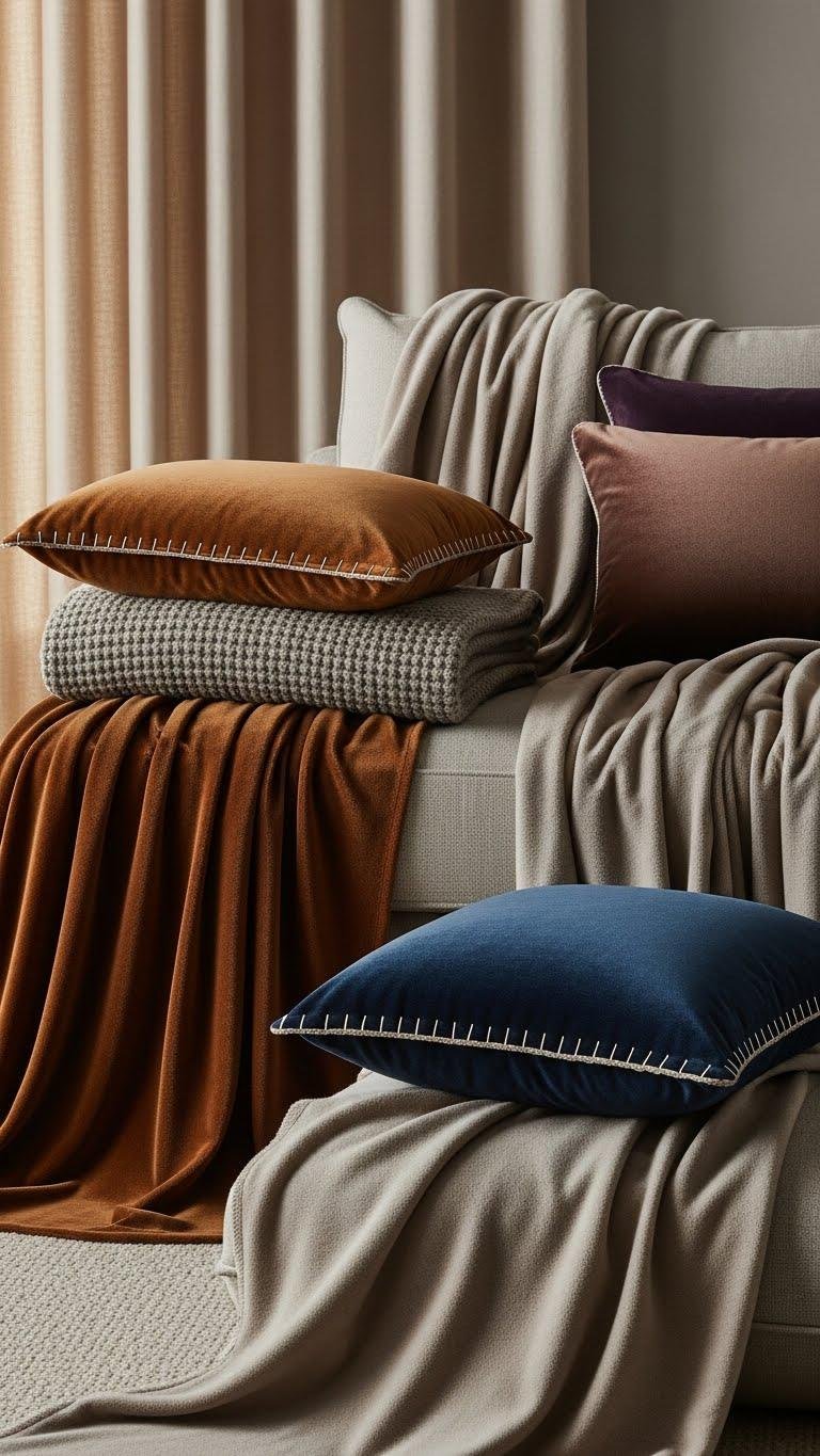Add Velvet Throws and Cushions for Luxury