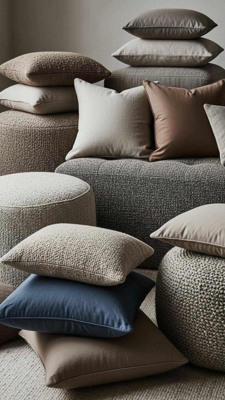 Layer Tactile Fabrics on Ottomans and Pillows