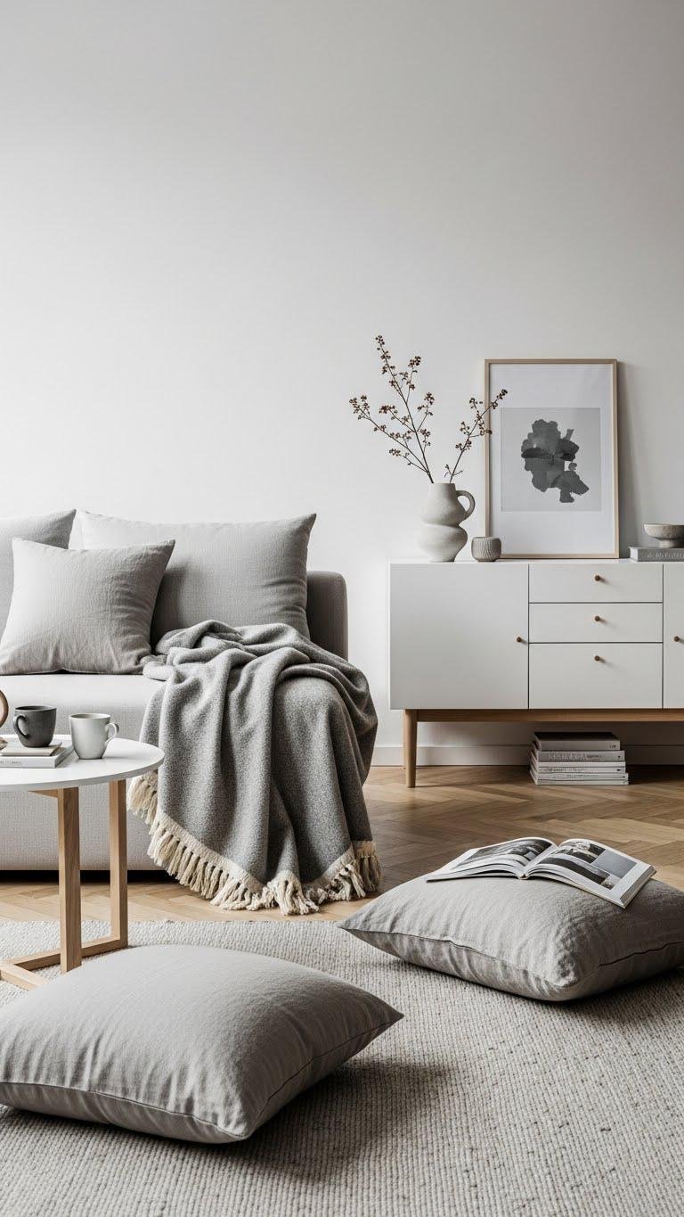 Though rooted in minimalist Japanese calm and Scandinavian warmth, Japandi works best when you layer in cozy textiles that soften its clean lines; think boiled wool throws, nubby linen cushions, and low-pile rugs in muted tones.