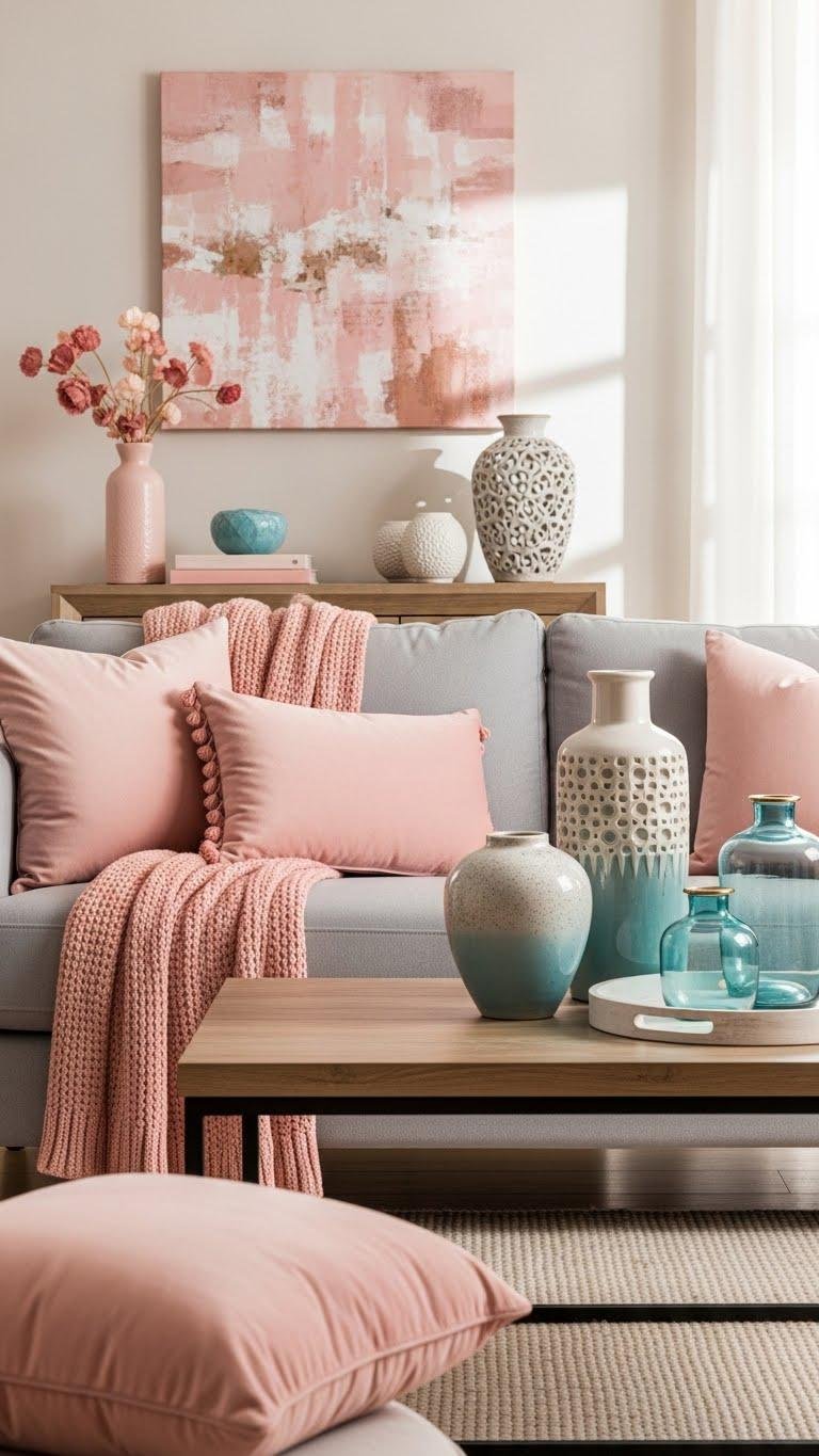 Introduce rose pink or ocean blue accents to give a neutral scheme a modern, intentional lift—rose adds warmth and soft glamour, while ocean blue brings calm contrast and depth.