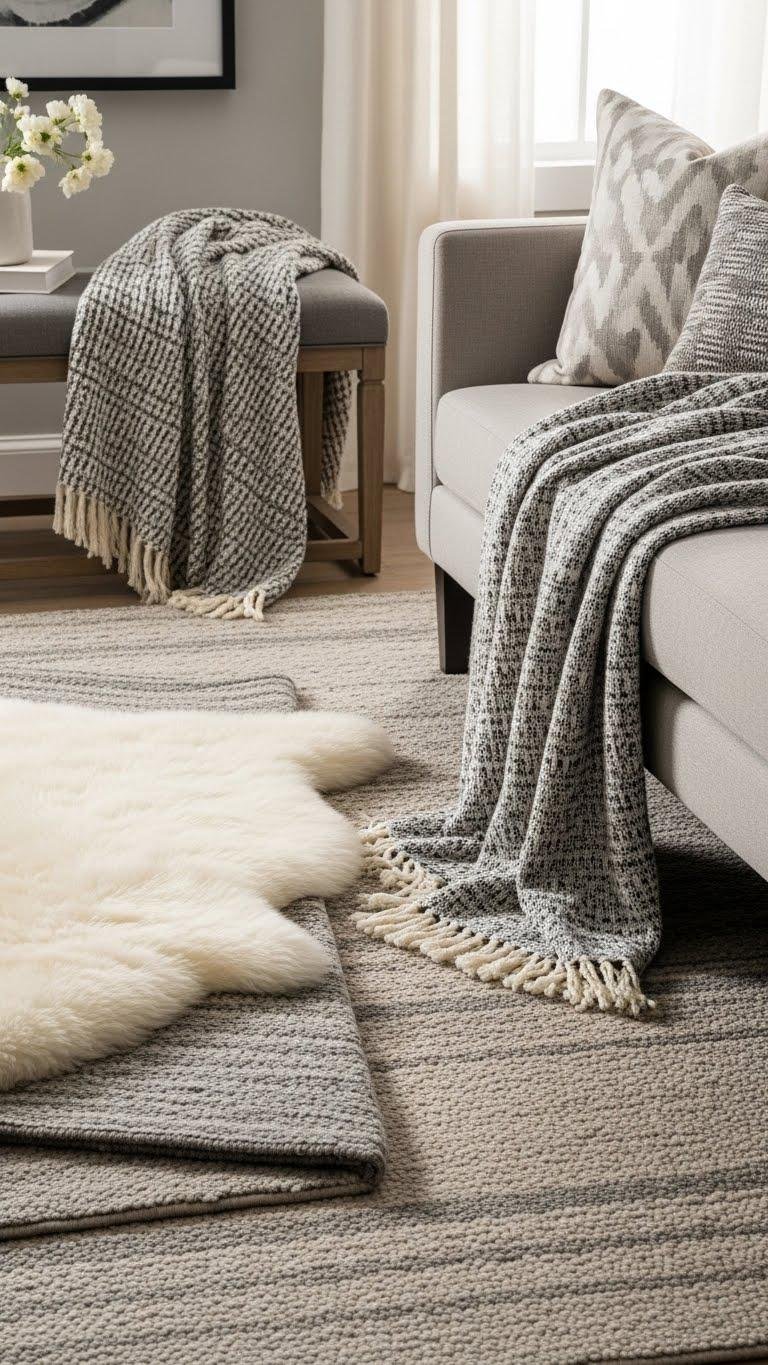 Layer Soft Rugs and Textured Throws for Warmth