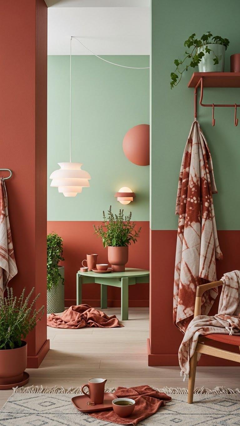 After grounding your palette with terracotta’s sunbaked warmth, introduce sage green to calm and balance the room.