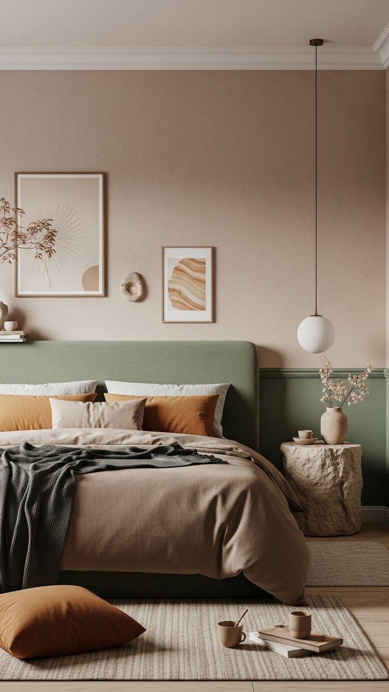 When you want a calm, grounded bedroom, start with a muted earth-tone palette—think soft clay, warm taupe, sage, and gentle sandstone.
