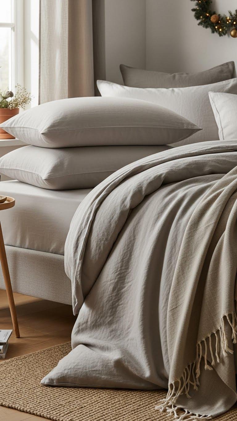 Because linen breathes and softens with use, layering it gives you temperature control without looking fussy. You can mix a fitted sheet, duvet, and a lightweight throw in tonal hues to sleep cool.
