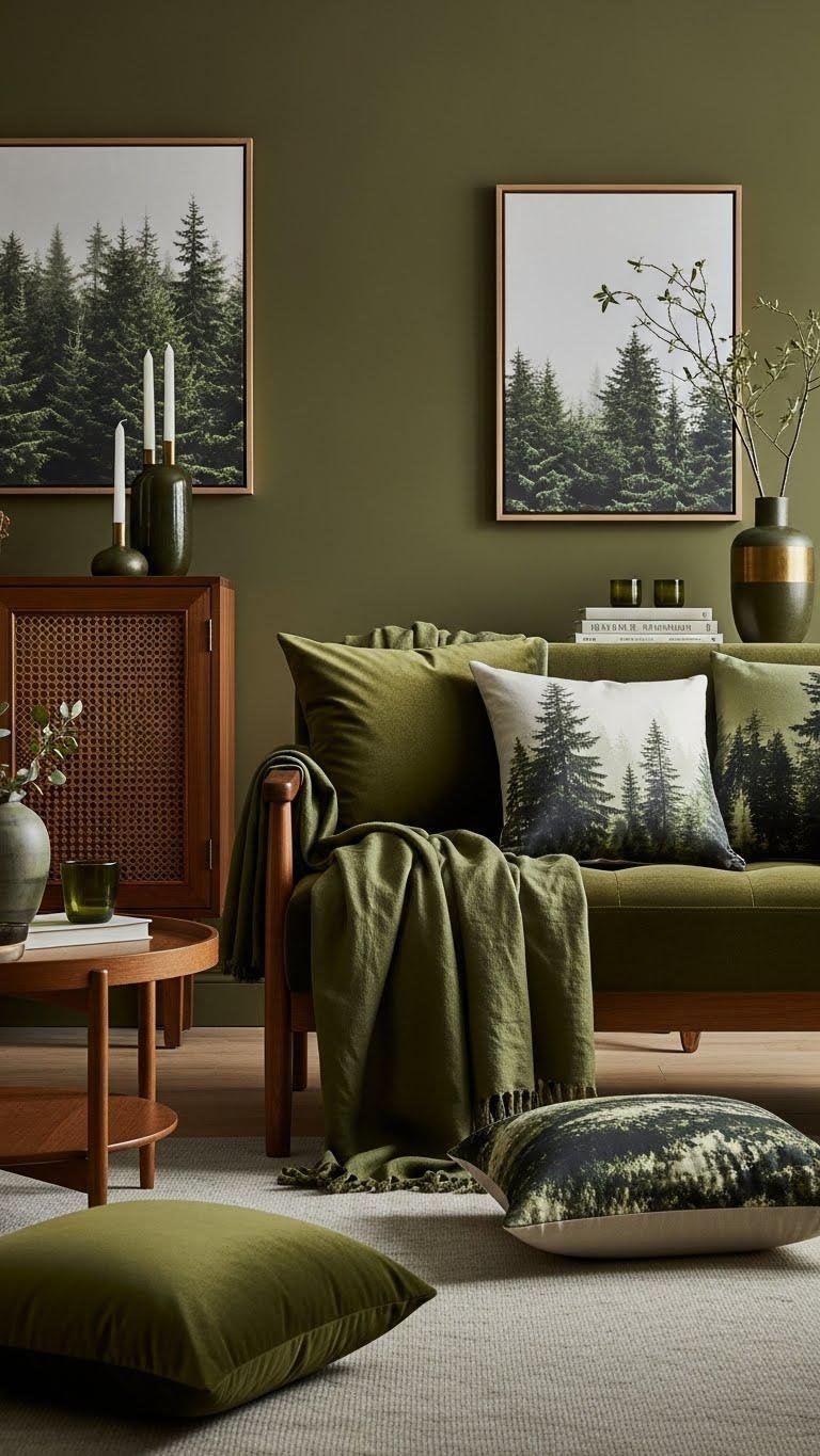 You’ll mix dusty denim pillows, cocoa velvet throws, seafoam suede chairs and espresso linen curtains to balance calm with rich, grounded contrast.