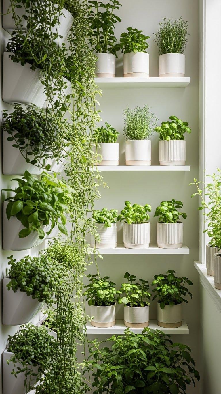 You’ll use vertical planters to maximize height, mix trailing and compact specimens, and tuck micro herbbeds into sunlit shelves.