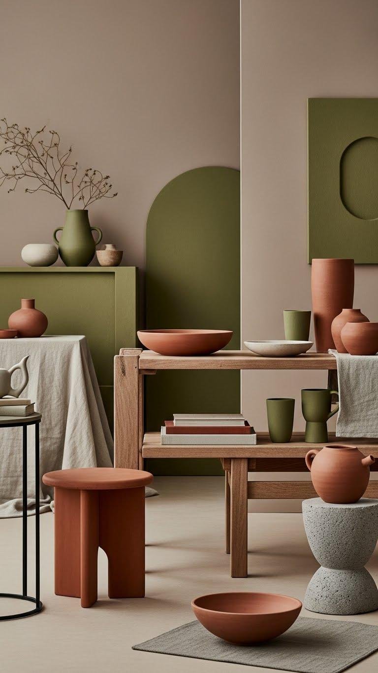 You’ll layer textural vessels with minimalist silhouettes, placing them in sunlit alcoves, on low consoles, or grouped on coffee tables.