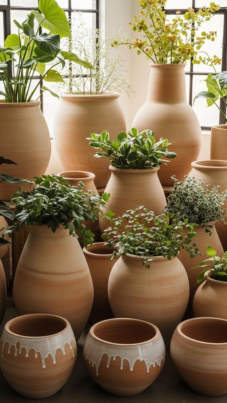 Often overlooked, terracotta planters instantly warm a room with their baked, earthy tones and textured surfaces.