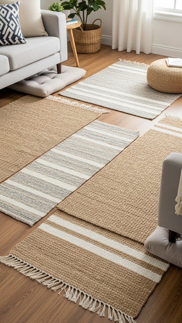 A few well-chosen jute and cotton rugs can instantly layer texture and calm a room, so pick pieces that balance durability with tactile appeal.