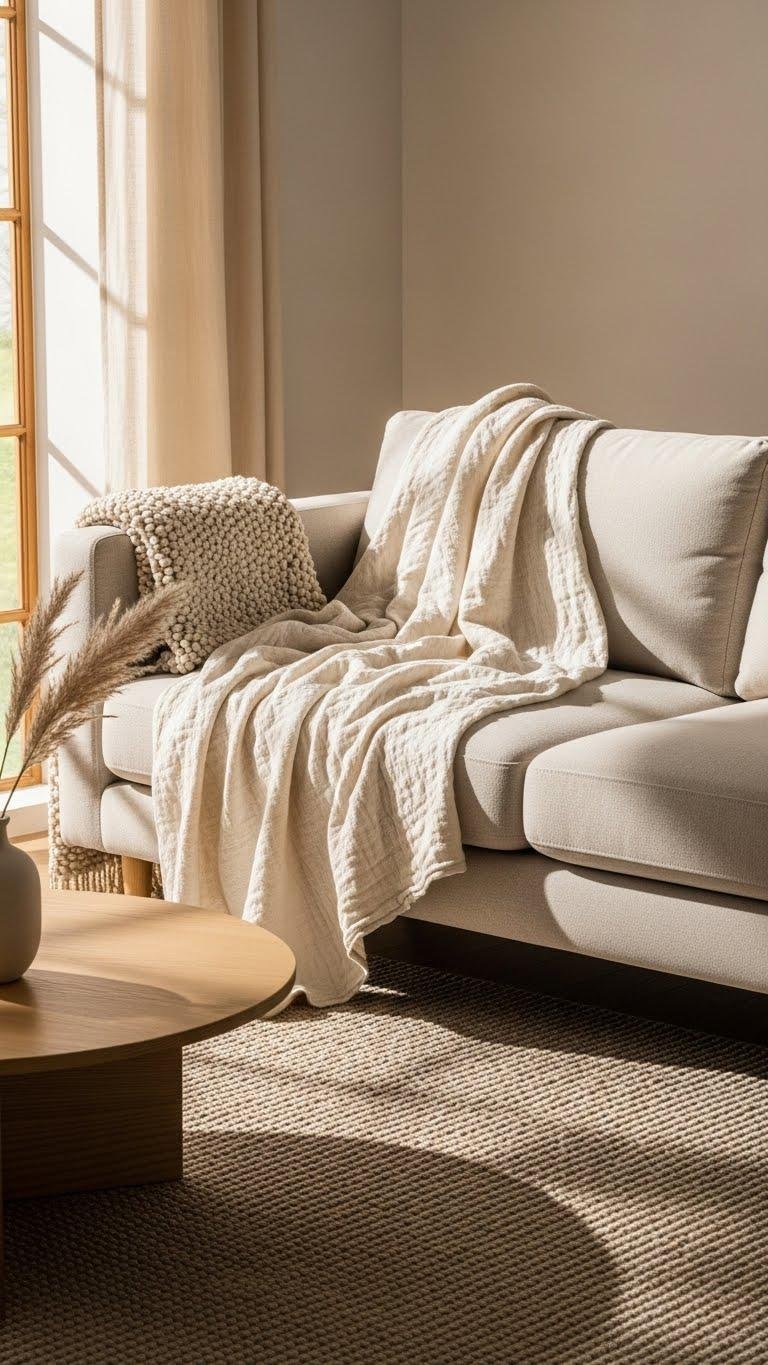 Layer Textured Throws on Minimal Sofas