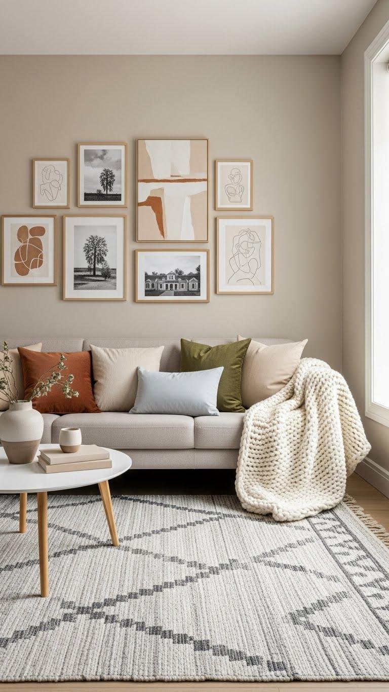 You’ll anchor rooms with greige textiles and curate greige artboards to build cohesive mood. Opt for layered textures and purposeful contrast so your home feels open, calm, and ready for personal expression without dictating how you live.