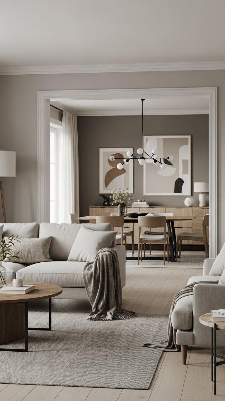 When rooms flow into one another, coordinated neutrals act like a visual thread that keeps the space feeling intentional; choose a restrained palette of three to four related hues—a dominant base, a slightly darker anchor, and one or two accents—to maintain continuity without monotony.