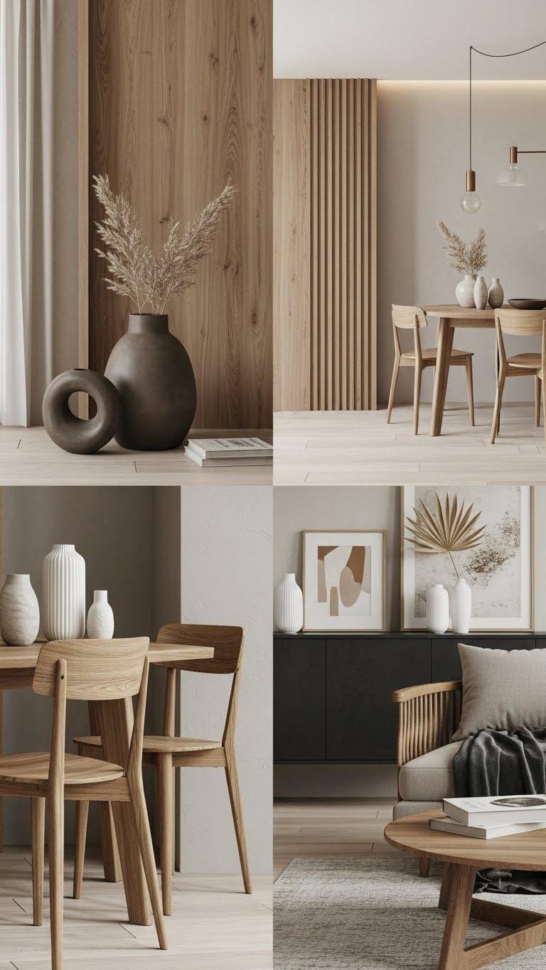 Pair natural timber with crisp dove, warm greige, or soft taupe to keep lines modern.