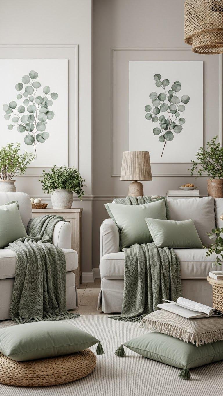 Slip in muted green accents to introduce an organic calm that complements greige without stealing the show. You’ll choose muted moss pillows, a herbal linen throw, or simple ceramic vases to ground the room.