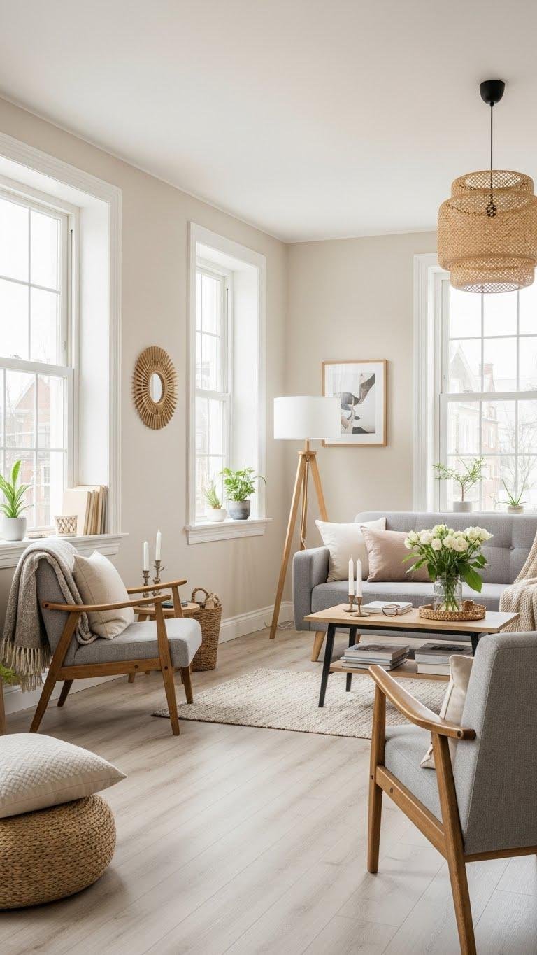You’ll layer neutral textiles for softness and contrast, pick tonal furniture to define zones, and let light and texture create relaxed, unfettered movement.
