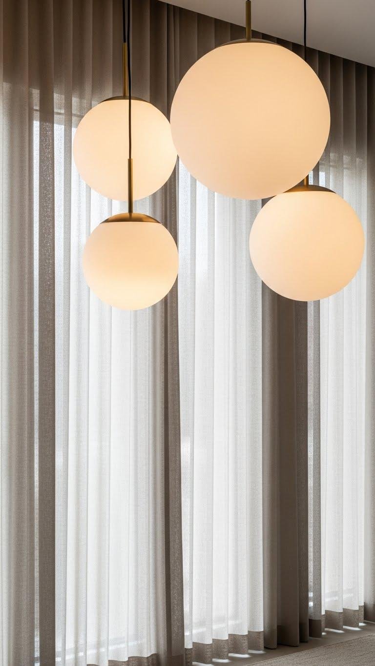 You’ll choose sheer silhouettes in natural linen to soften edges while respecting openness. Mind globe scale to keep proportions calm; consider layered pendants for depth.