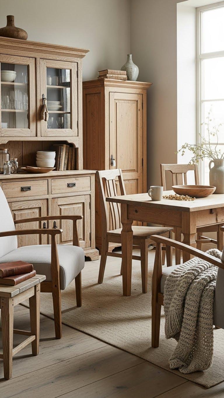 Those worn surfaces invite touch, tell stories, and give your neutral interior a quiet, lived-in authority.