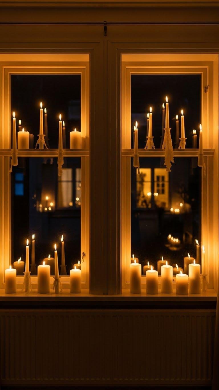 Often you’ll find that candles in windows instantly turn a simple room into a hygge scene, their soft glow outlining silhouettes and inviting passersby to notice your home’s quiet warmth.