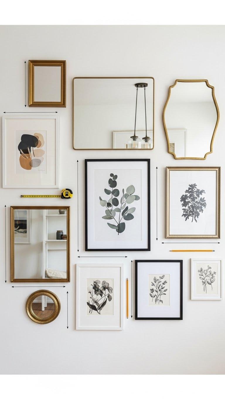 Measure twice and mark once: hanging framed art and mirrors with deliberate spacing keeps your walls looking balanced and intentional.