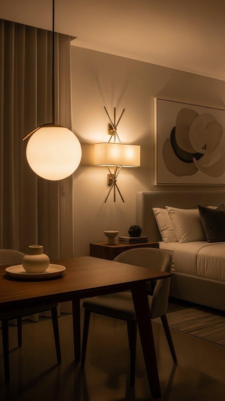 Choose pieces with clean lines so they feel liberated, not fussy. A bold pendant over a table or a geometric sconce beside a bed gives focus without clutter.