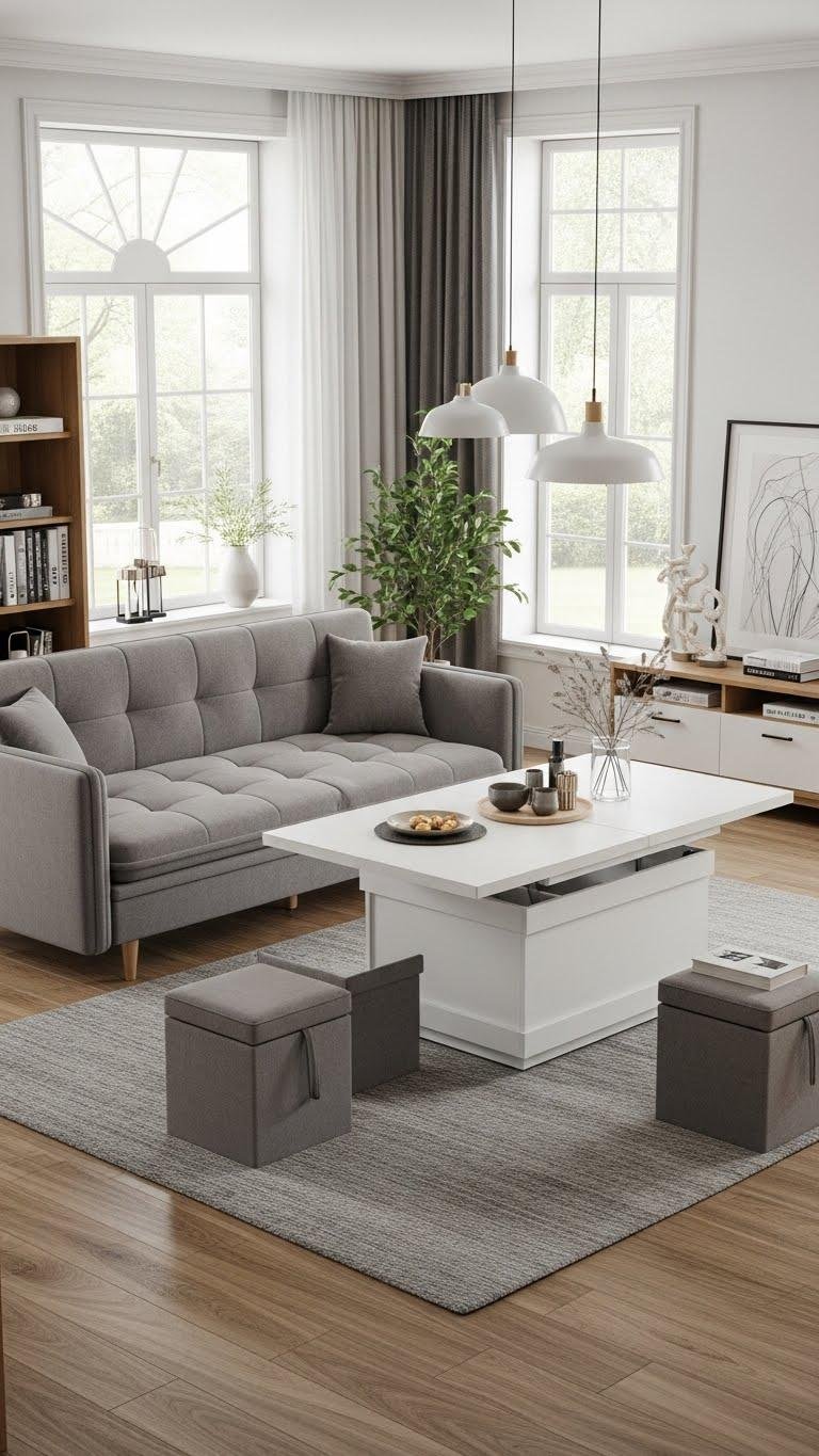 You’ll love space saving seating that tucks away when you need room and convertible tables that expand for guests. Pick pieces that offer storage, flexibility, and clean profiles so your home stays uncluttered, elegant, and free — ready for living without compromise.