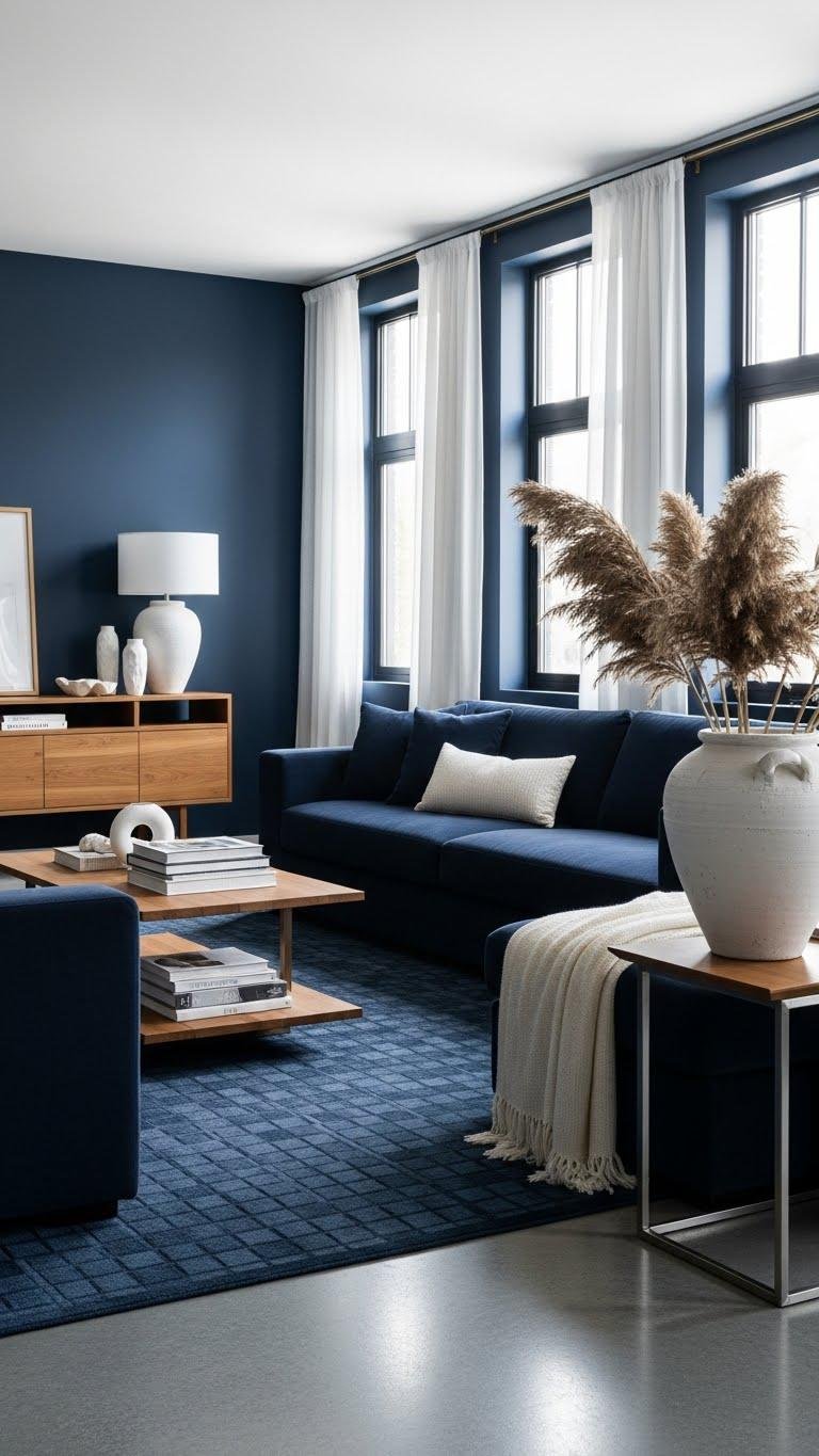 When you introduce deep blue walls or large textiles, they immediately calm the room while adding a polished, modern edge. Embrace navy tranquility with a statement sofa or rug, pairing it with crisp whites and warm wood.