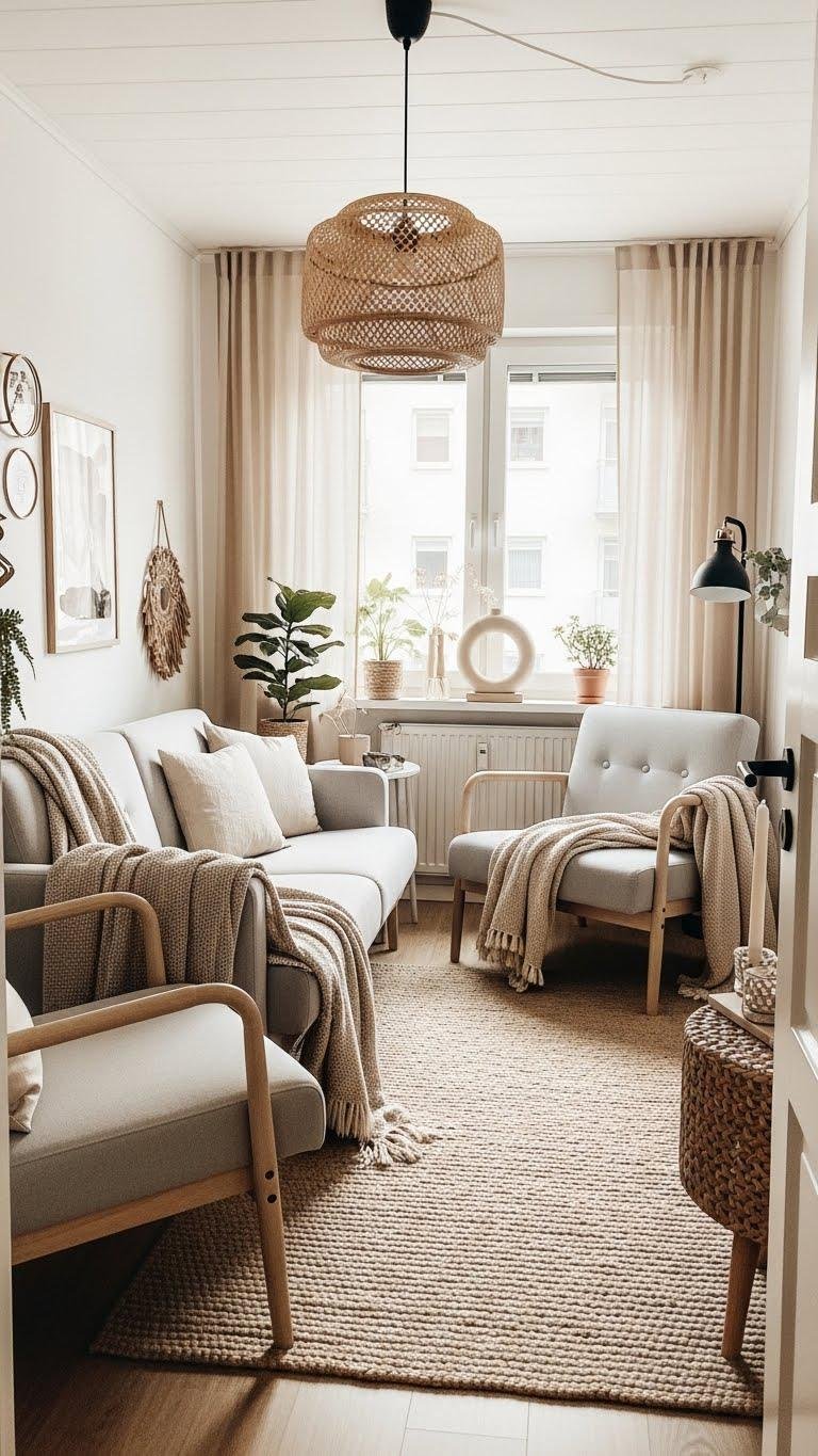 Start with a light, neutral base—think soft whites, warm beiges, or pale greys—to instantly make a small room feel airy and expansive.