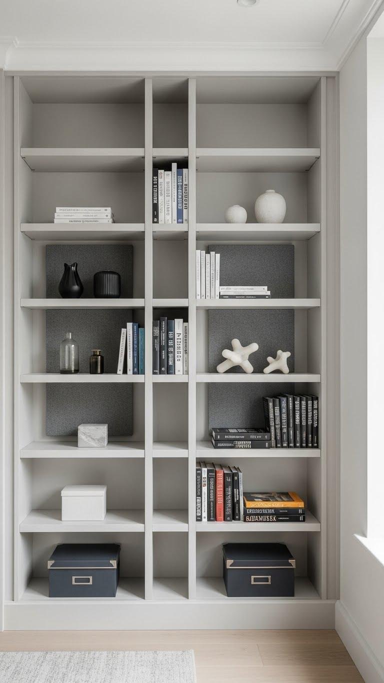 You’ll customize open shelves for display, tuck clutter into hidden compartments, and add acoustic panels behind books for calm.
