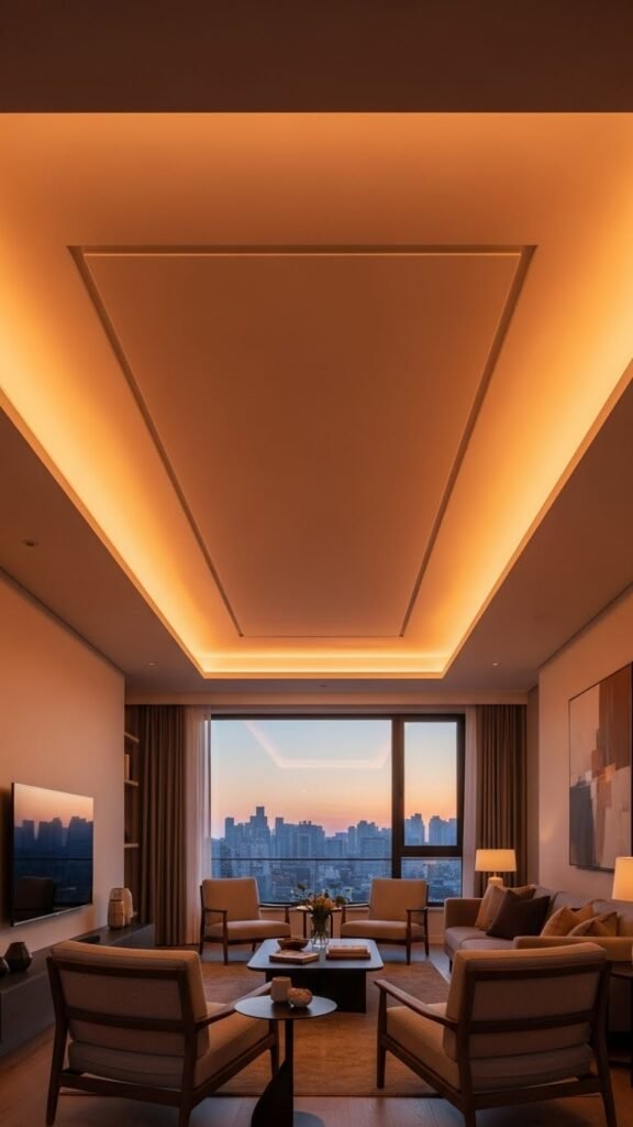 You’ll love how an indirect soffit and hidden valance wash walls with warm, diffuse glow, creating depth and calm. It’s modern, unobtrusive, and liberating — perfect for open layouts where mood matters more than visible fixtures.
