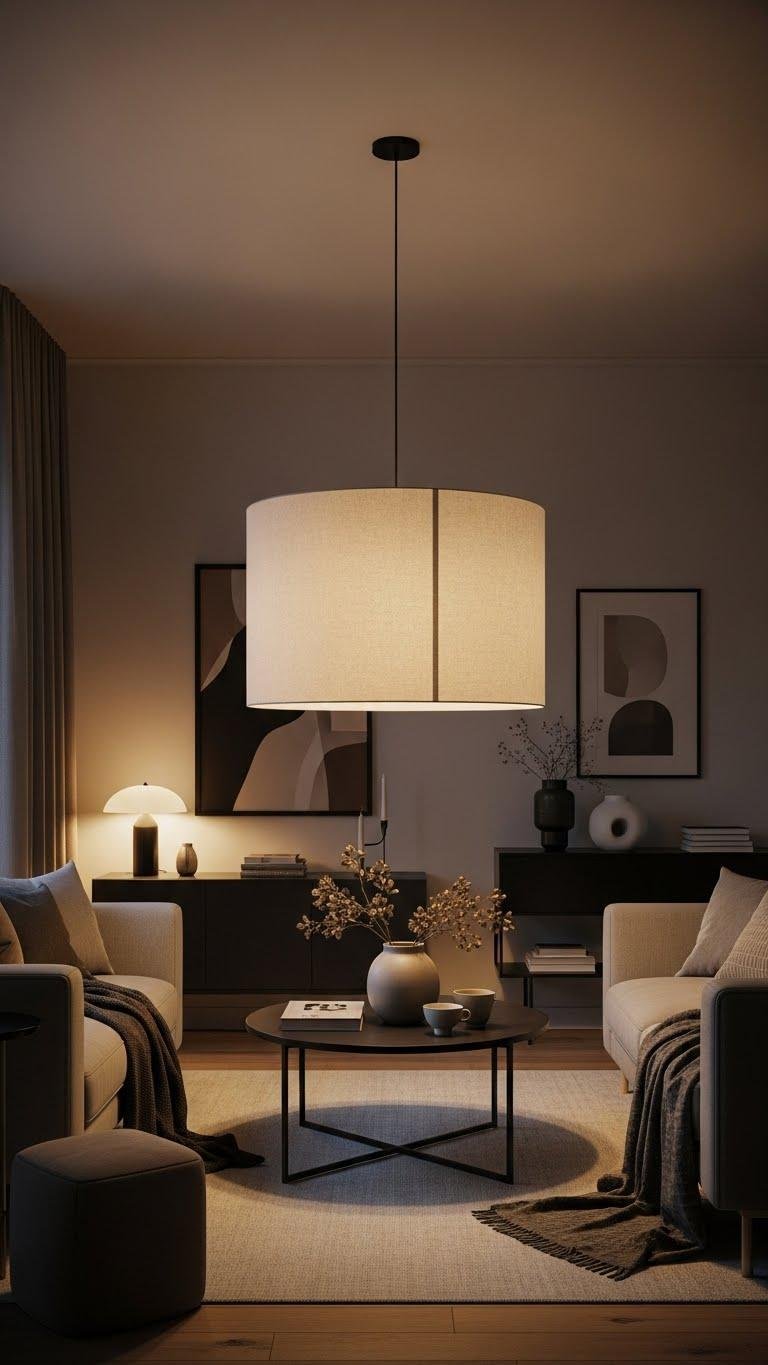 Often seen in modern salons and Scandinavian homes, an oversized fabric pendant softens a room with an even, diffused glow that feels effortless. You’ll choose an oversized drumshade and a fabric lined canopy to mute harsh edges, feel warm textures, and simplify sightlines.